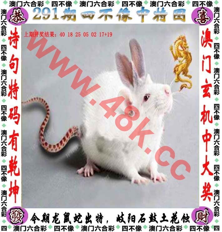 291期: ⑦肖 | 兔马牛猴龙鸡鼠 | ????中 |